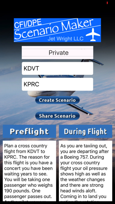 JetWright's CFI/DPE Scenario creator creates randomized scenarios for teaching and evaluating private,