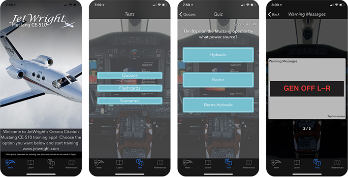 Citation Mustang - CE-510 - JetWright LLC's Citation Mustang app contains flash cards, quizzes, training